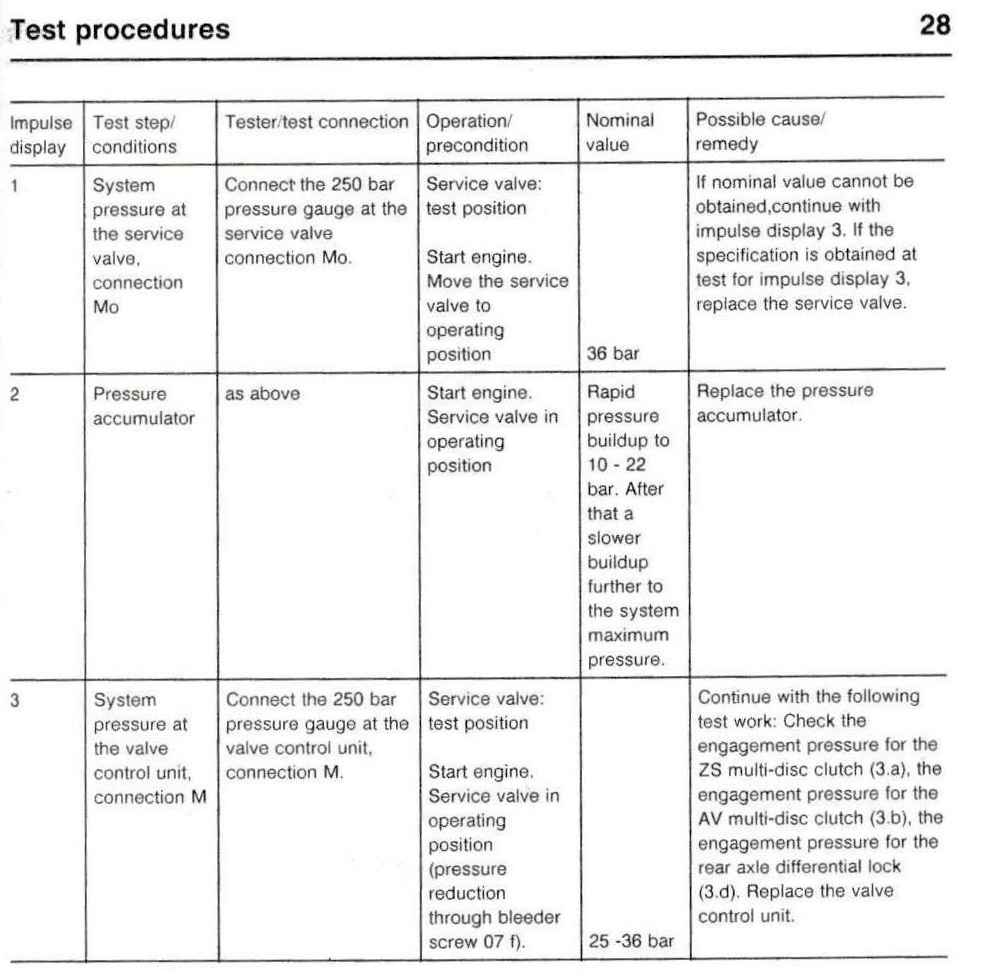 - Testing front axle drive train (AV) and center differential lock (ZS) pistons for leaks